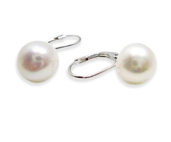 These large pearl leverback earrings feature round, 10-10.5mm AA+ high quality cultured freshwater pearls. They are dome shaped with round on top and flat on its back to be more securely stick on the back.