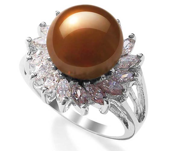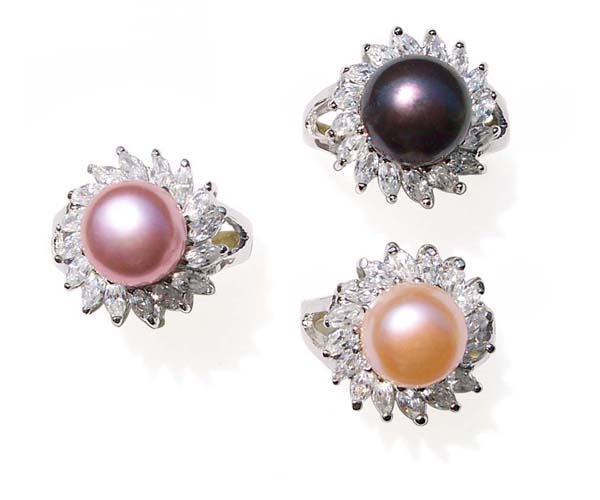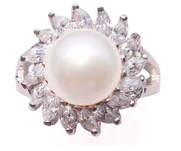One large 10-10.5mm genuine pearl in the middle with CZ diamonds surrounding it.