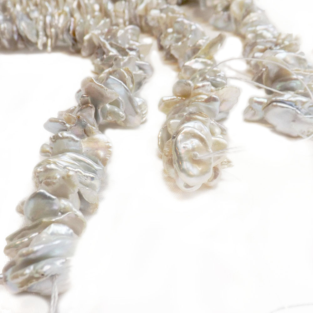 Keshi pearls are natural free shaped flat and somewhat chunky pearls. You can use them for a variety of jewelry making for its uniqueness.