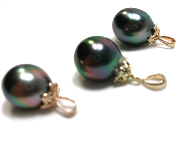 This high-quality beautiful drop tahitian pearl pendant shows the true beauty of French Polynesia. It has a gorgeous and classic Tahitian color. Even though they do also come with very slightly different color overtone, from peacock green to golden yellow, as the last picture shows.
