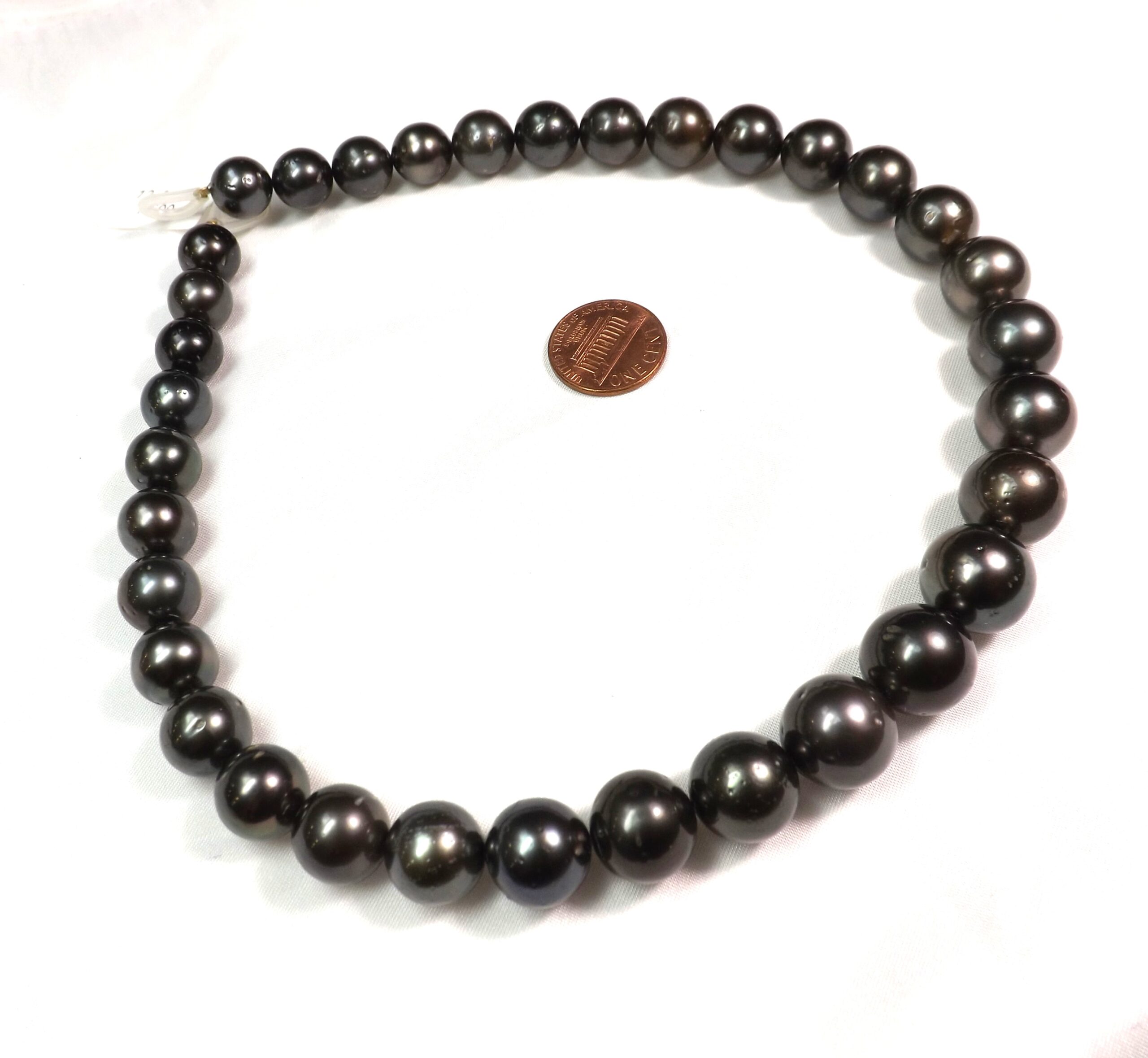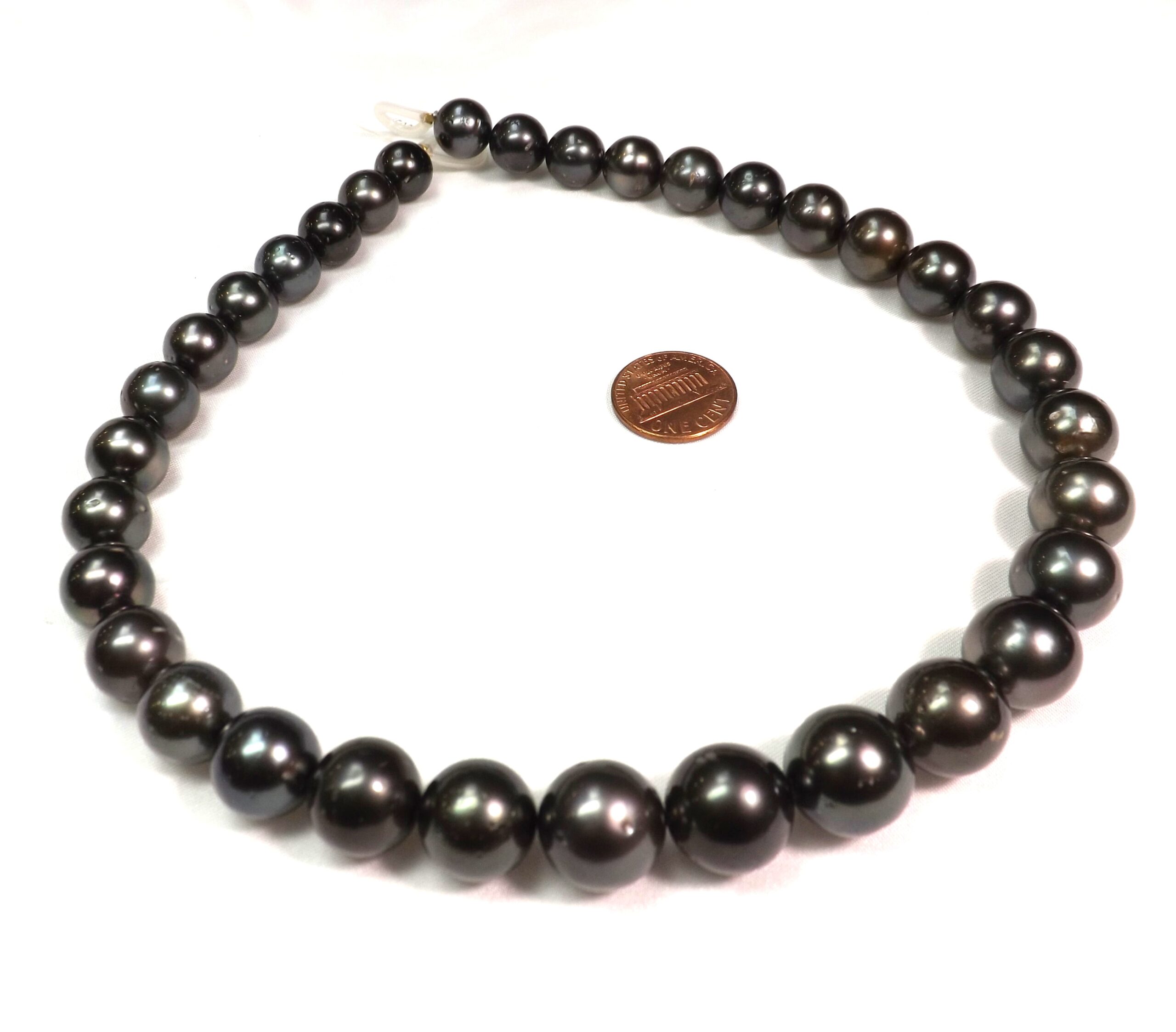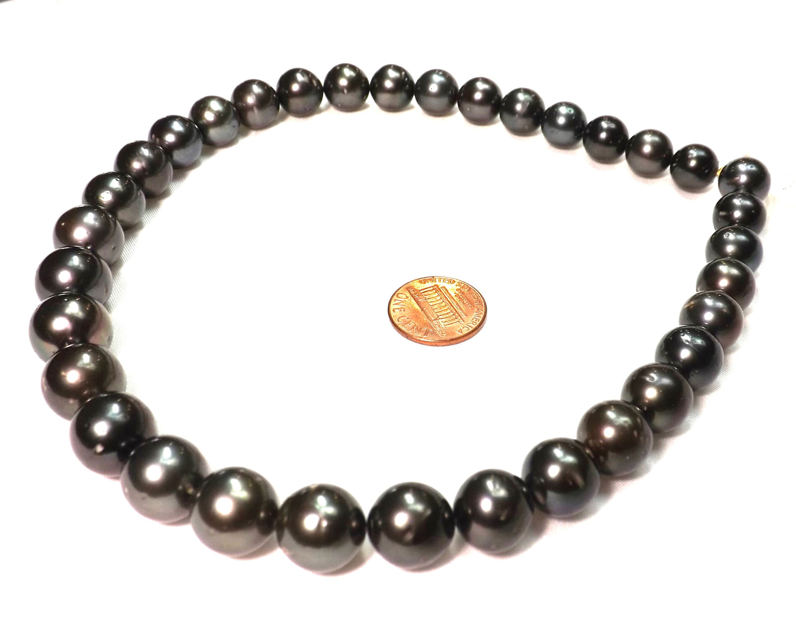 12-14mm Big Authentic Tahitian Black Round Pearls on Loose Strand