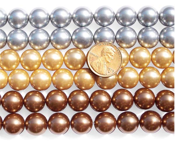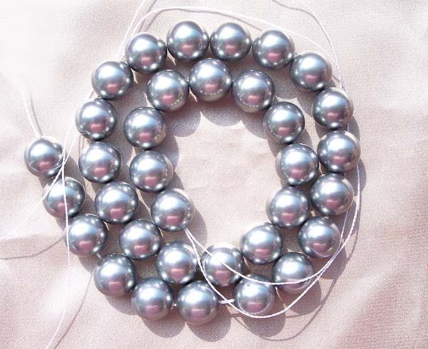 These large 12mm Southsea shell (replica) pearl strands are very round in shape.