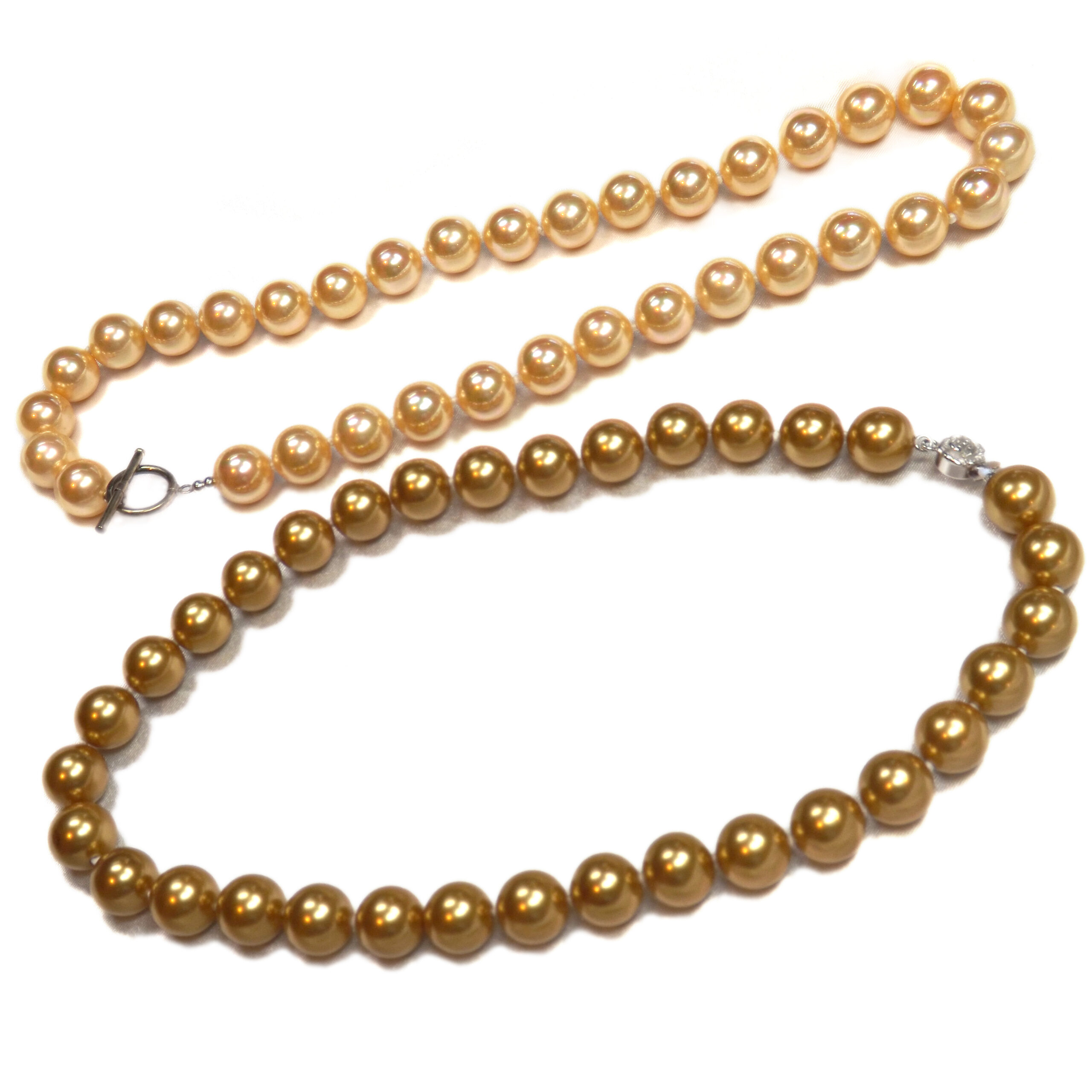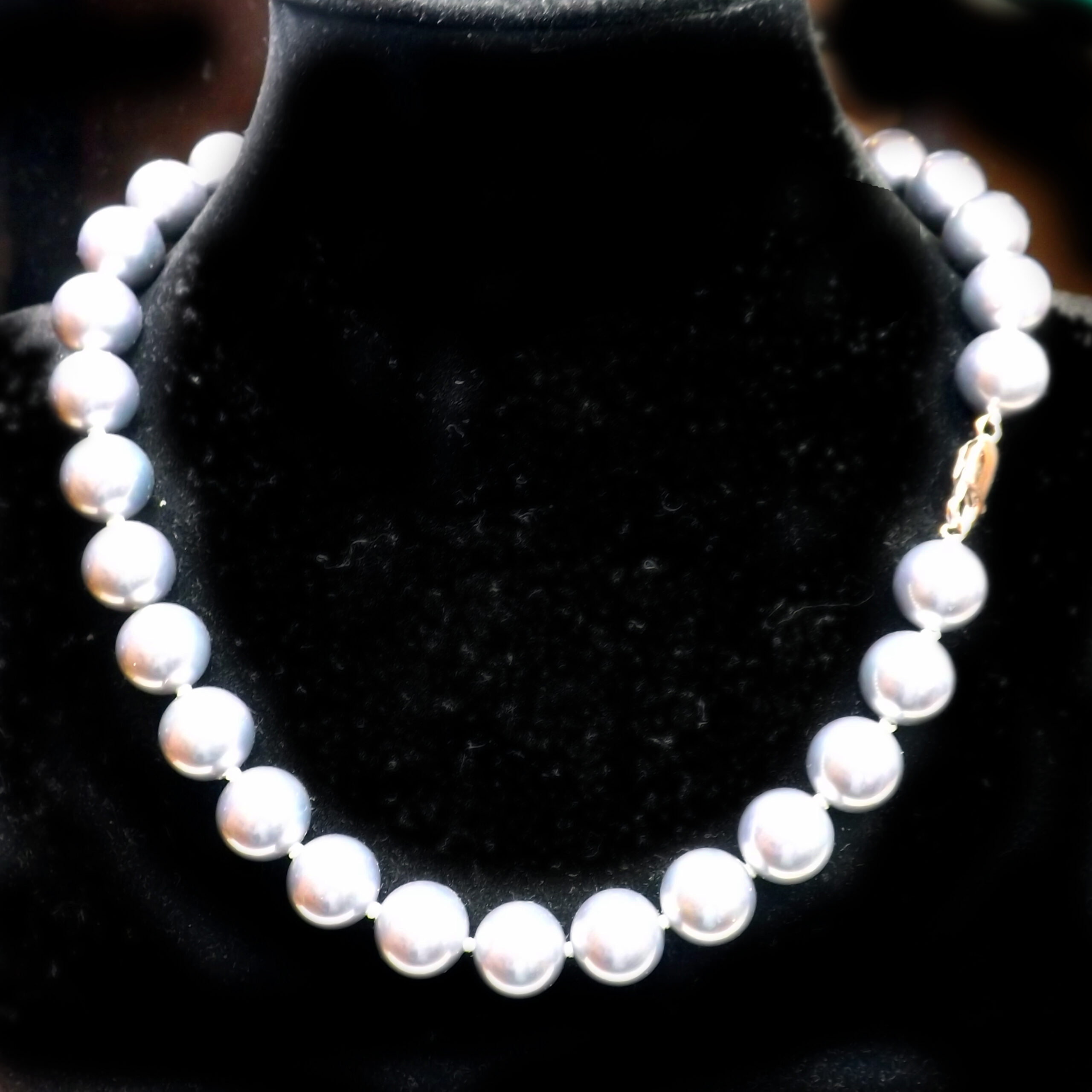 This is southsea shell pearl necklace(Majorca type of stunning replica) at large sizes of 12mm and 14mm.