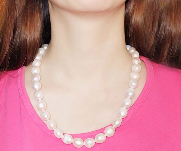 Made from massive 13-14mm Baroque pearls, only South sea shell pearls dare to compare but we can offer you these lovely AA+ grade Freshwater pearls for less than a fourth the price of what a comparable South sea pearl necklace would cost.