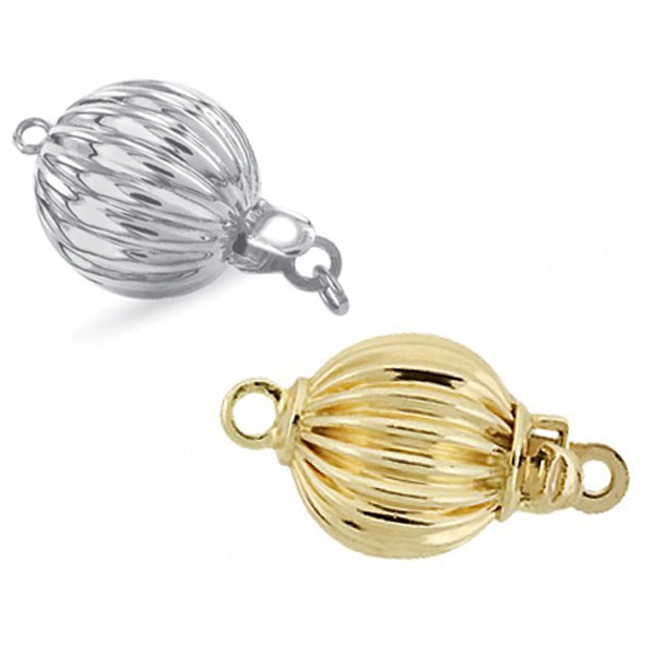 These beautiful 8mm sized 14k yellow gold or white gold corrugated ball clasp is good for single row pearl necklace.