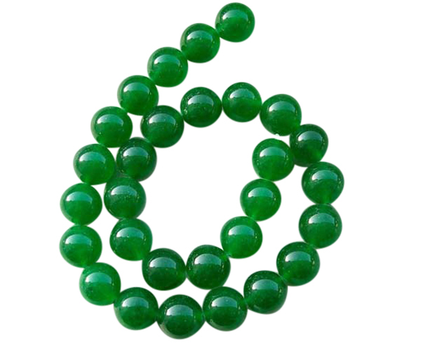 These are bright green colored 14mm round jade strands. There are approximately 28 beads on a strand at 15-15.5in long.