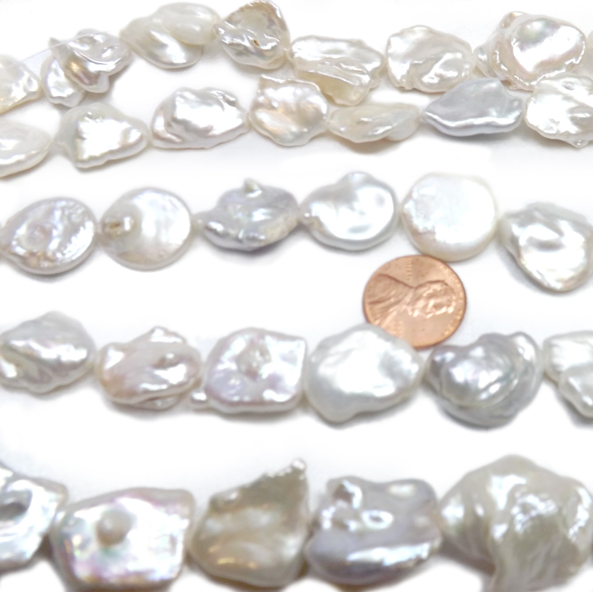 These 15-20mm baroque pearls are big and have high luster, although some of them do come with natural markings, imperfections and irregularities. Maybe for one side of pearls as showing in the pictures, pleasant enough to show they are made of nature. If you like smooth surfaced pearls, the other side can still show nicely. Just like most of baroque pearls, each one of them have their own unique shape, some of them are more flat than others. Please note it if you have preference.