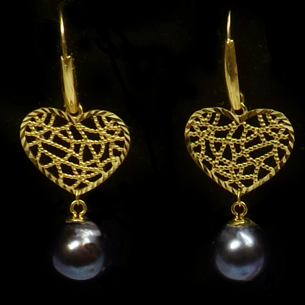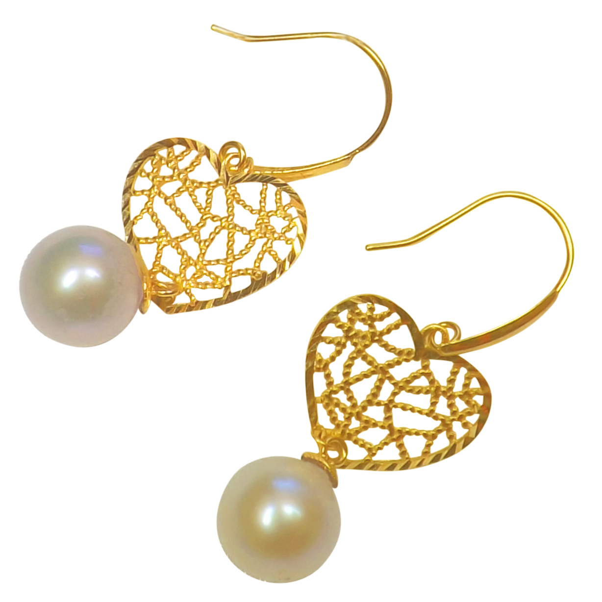 Add a touch of elegance and sophistication to your outfit with the heart shaped pearl earrings in 18k gold, it is sure to turn heads wherever you go. With its shimmering pearls and solid gold settings, this pair of pearl earrings is the perfect accessory for any occasion. Elevate your style and illuminate your look with the high quality real pearl earrings today!
