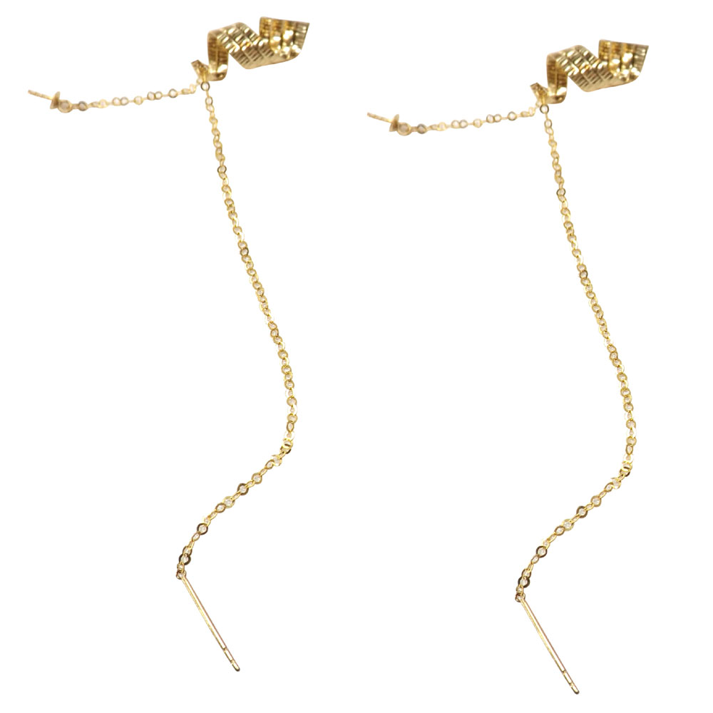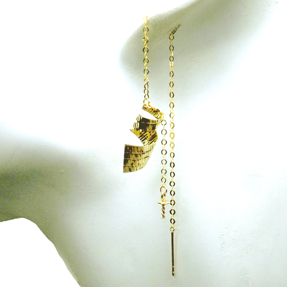 18K Yellow Gold Pearl Earring Setting – Ear Thread with Gold Curled Ribbon