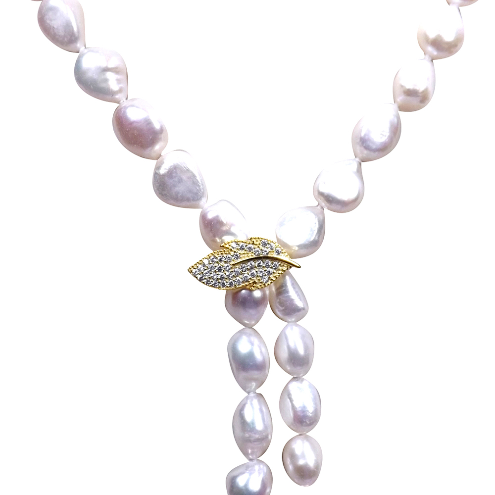This brooch has ample room on its backside to be used for a necklace (be it a jade or a pearl necklace)as a beautiful Center Piece or pendant or a shortener. The pictures are shown here with a strand of 10-11mm baroque pearl necklace. You can make one from our “Pearl Strands” department, or buy this pearl necklace by searching product number ZEX1001L that is 59in long with a silver clasp.