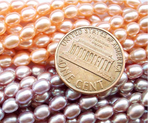 These are 3-4mm(width) rice pearls, AA+ grade, which have high luster and with hardly any surface markings. Each 3-4mm rice pearl strand has an approximate weight of 7.25 grams.