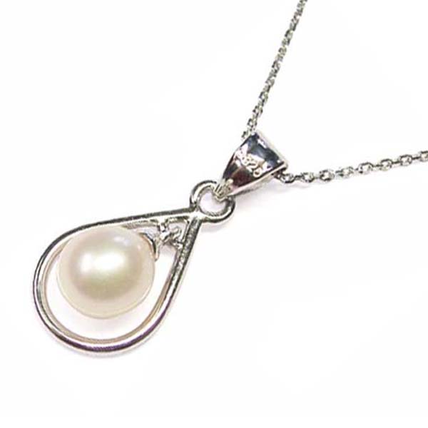 The drop pearl necklace in silver has a genuine 6-7mm high quality freshwater pearl that has a high luster and doesn`t have any visible markings or flaws on its surface.