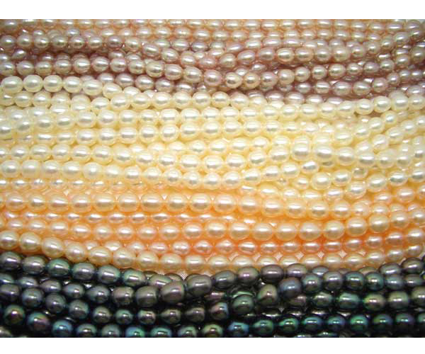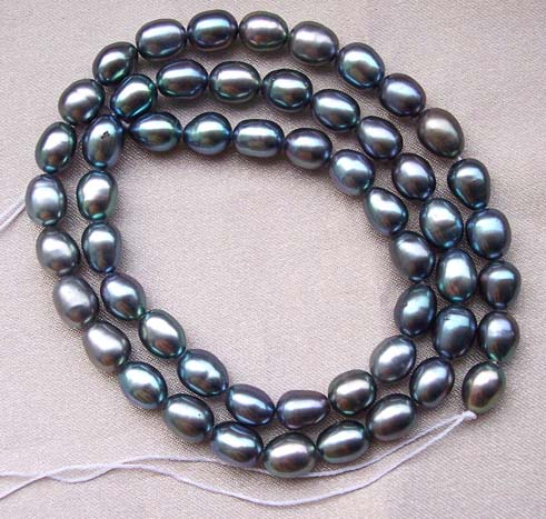 These pearls are little beauties. They come with very high luster and hardly any surface markings. There are approximately 55 pearls on a 5-6mm rice pearl strand at 15-15.5in long.