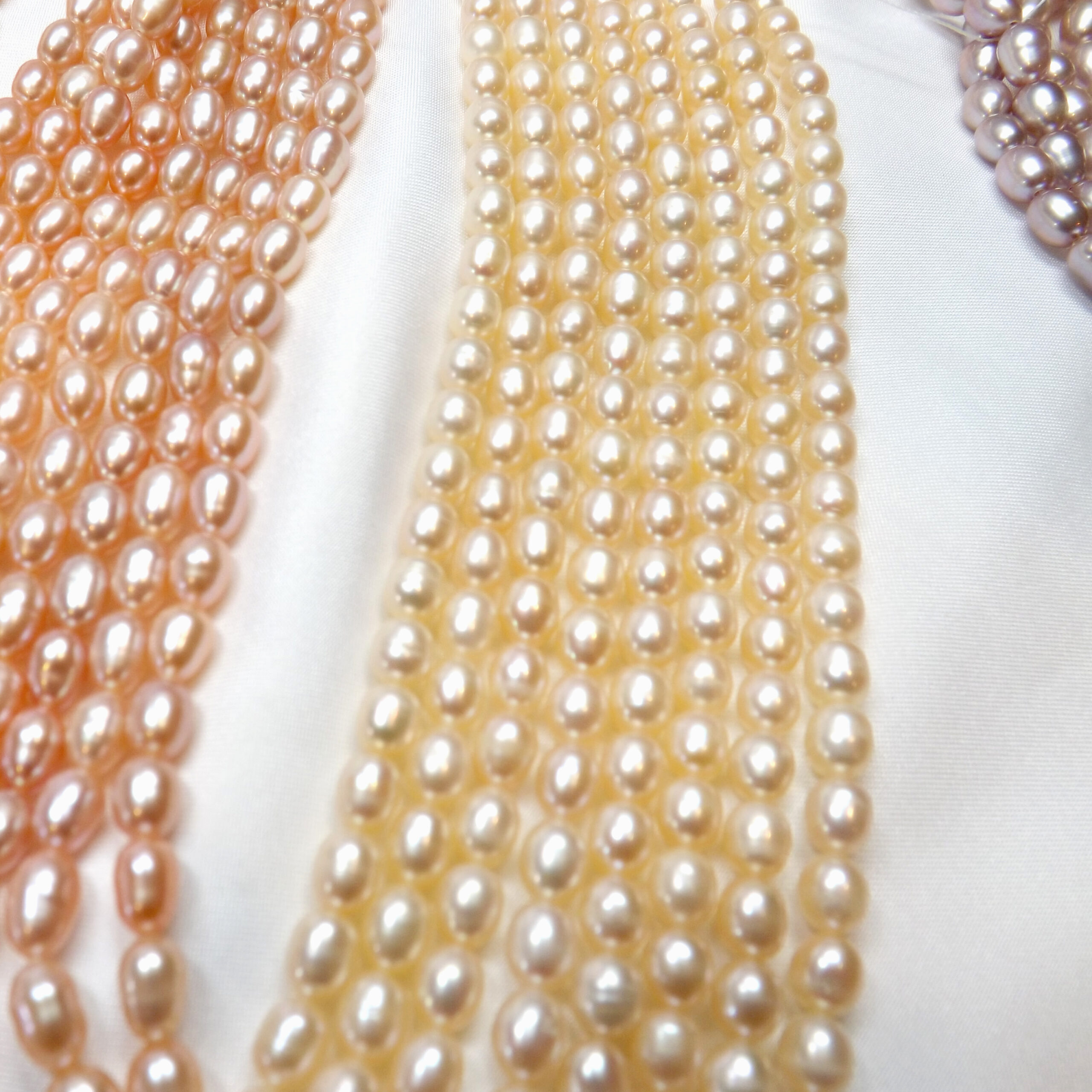 These pearls are AAA- grade high quality in rice shape at 5-6mm (width) in sizes. Each 5-6mm rice pearl strand has an approximate weight of 15.65 grams.