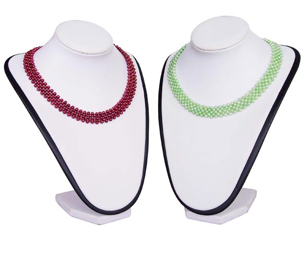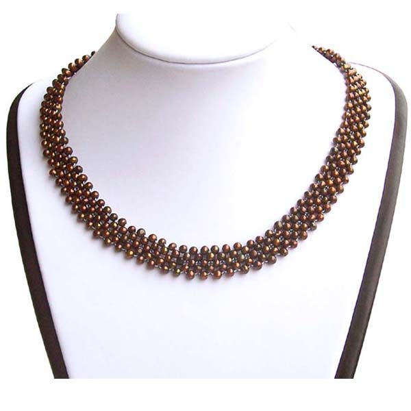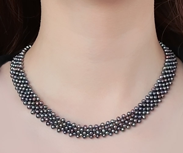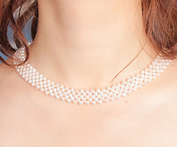 The multi-strand pearl necklace has five strands of 3.5-4.5mm real cultured pearls, with a few markings to show they are completely natural.