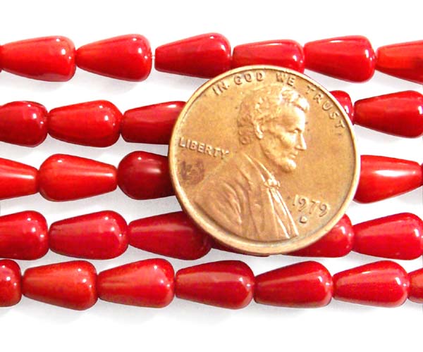 5x8mm length drilled teardrop shaped Coral beads. There are approximately 54 beads on one strand at the length of approximately 16″. Each strand has an approximate weight of 14.73gram.