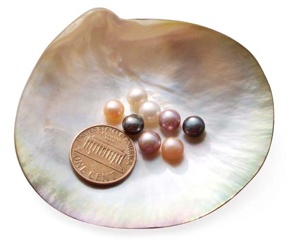 The picture is taken with multiple 6-7mm loose button pearls inside a shell to give an idea of the actual size of the pearls.