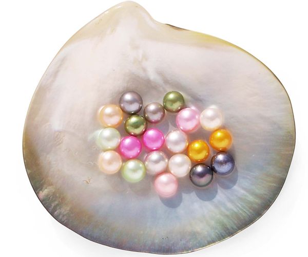 Several colors of pearls are available for immediate delivery: pink, mauve, black, peacock green, grey, chocolate, gold, and light green.