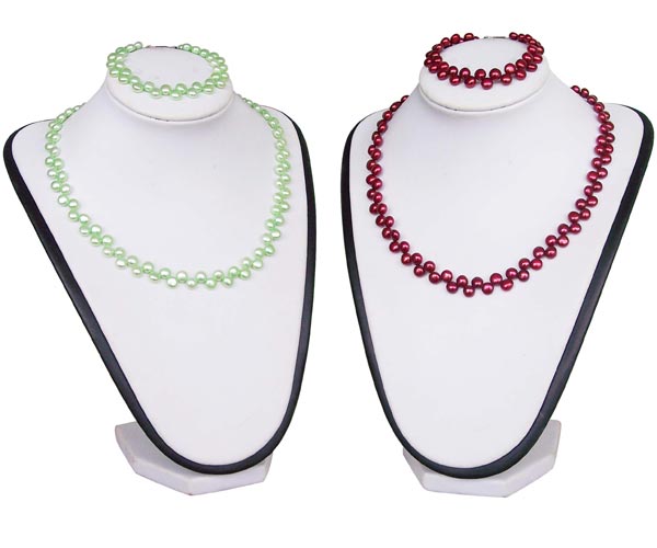 This matching pancake pearl set includes pearl necklace and bracelet. Both made of 6-7mm pancake high quality AAA- pearls.