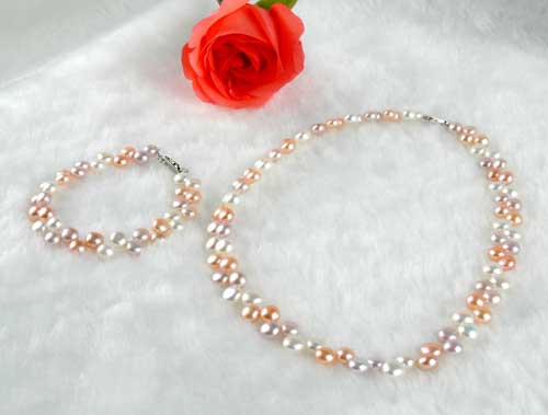 Several colors and combination of pearls are available for you to choose from. It includes a two color alternation of white and pink or a three color alteration of white, pink and lavender. This is of course along with single colored sets such as all white(sold out), all pink, all lavender, all light green.