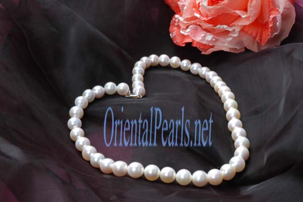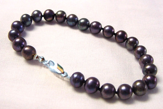 The 6-7mm round pearl bracelet measures approximately 7″-7.5″ long. White and black colors of pearls are available for immediate delivery.