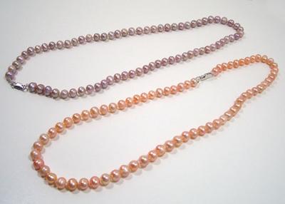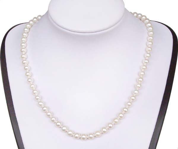 A classic 6-7mm round pearl necklace hand knotted between each pearl with your choice of 16, 17, or 18 inch length. If we do not have your preferred color and/or length in stock, we can make it for you.