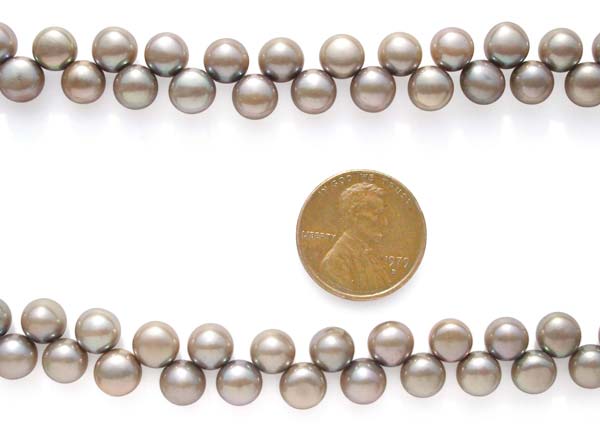 These are AAA- grade 6-7mm button shaped pearls. All of them are top drilled with very high luster and fairly regular shapes. They only have a few markings and surface circles which are mostly occuring on their back sides only. Also called flat shaped or pancake shaped pearls, these can be used for a wide range of jewelry making uses.