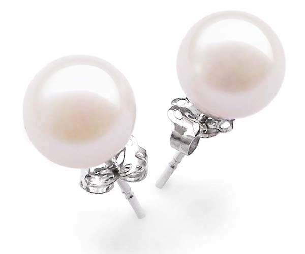 7-7.5mm Completely Round Pearl Earrings in Solid Gold