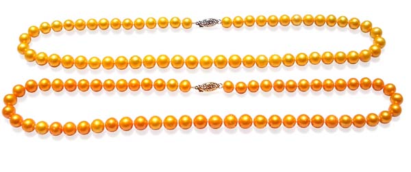 Every additional inch only costs $8 for all other colored pearls except gold color. If you need to alter the length, be it 36″ or 100″, all you need to do is to write in the Comment field before you click on the button to place the order. And authorize us to charge the extra inch(es) on the same credit card. You will receive an email receipt immediately. Gold colored pearls are not available for custom length. They are limited qualities in stock and not available for back order.