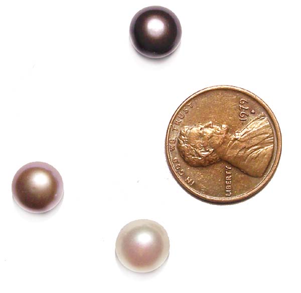 7-8mm AAA Graded Button Pearl in White Pink Mauve and Black Half Drilled