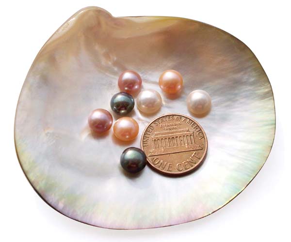 The picture is taken with multiple pearls inside a shell to give an idea of the actual size of the pearls.