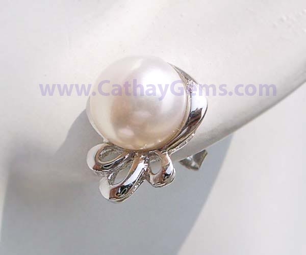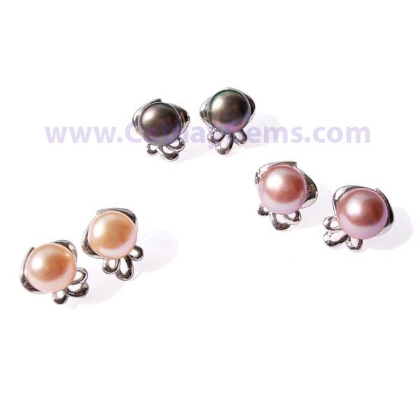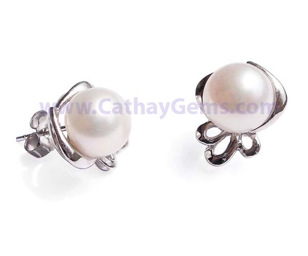 A pair of 7-8mm AAA high quality button pearls set in sterling silver. These pearls are flat on the back and dome shaped on the front.