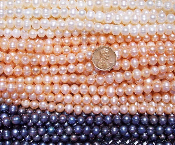 These are 7-8mm side drilled semi-round pearl strands with natural dents, These are real pearls instead of plastic made imitation pearls. We just started carrying them because customers asked for their natural and unique look.