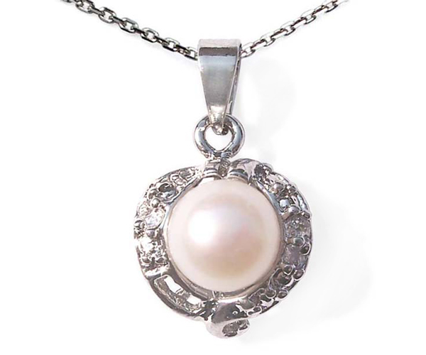 Beautiful tiny cz diamonds surrounding this genuine pearl and finished with a 16″ or 18″ long 925 sterling silver chain, it makes this 7mm pearl pendant a timeless classic that you can wear it anywhere with any outfit.