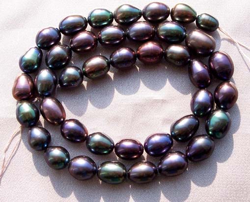 This high AA+ quality rice or oval shaped pearl strand is 8-9mm in large size. They are measured from width of the pearls, with nice luster and very little flaws or natural surface markings. They are noticeable only upon close examination to show they are nature made real pearls, instead of plastic.