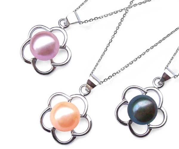 Several colors of pearls are available: White(sold out), Mauve, Pink, Black, Cranberry, Baby Pink, Light Green, and Chocolate. It will come with a free 16″ sterling silver box chain with 925 stamped on the clasp.