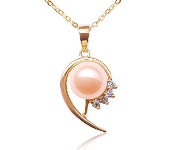 Regal and timeless, this lovely 14K solid gold pendant is made of 8-9mm AAA graded round pearls and is adorned with Cubic Zirconia.