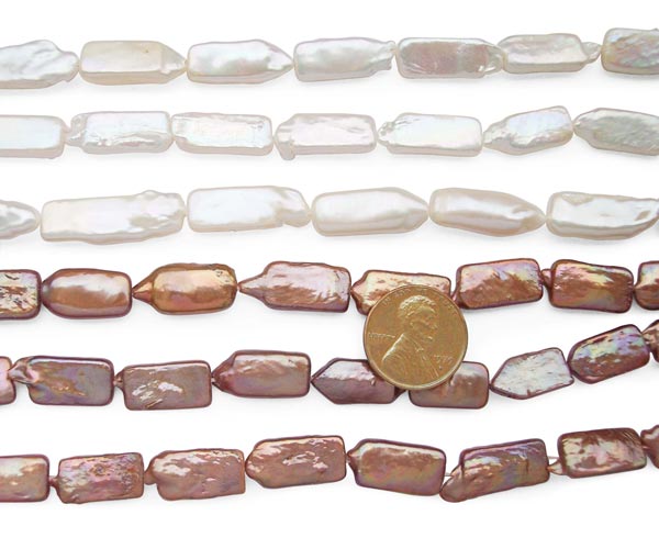 These are white(sold out) and chocolate colored rectangular coin pearl strands.