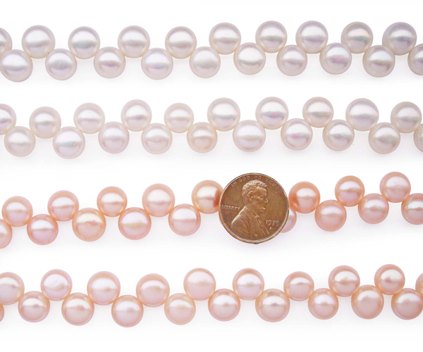 These top drilled pancake pearl strands have a very high luster and hardly any surface flaws. Each strand is approximately 15.5in long with about 58 pearls per strand.