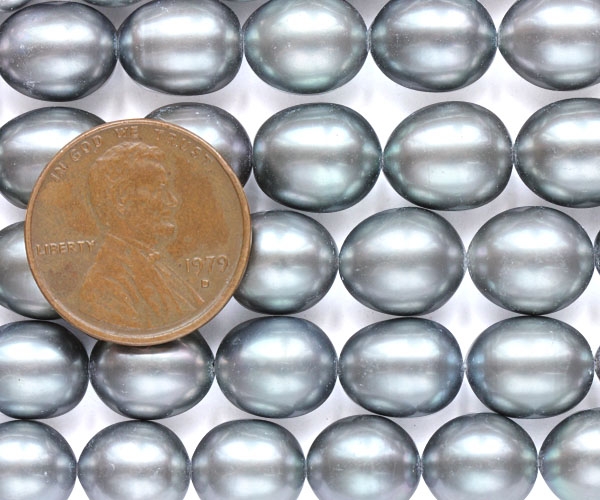 These pearls are exceptionally large 9-10.5mm on the drilled dimension and about 8.5mm wide. There are approximately 36 pearls on each 15-15.5in strand and each strand weighs approximately 45 grams.