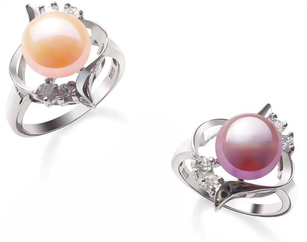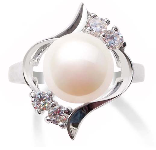 This beautiful pearl ring is made with a 9-10mm AAA quality button pearl. It is set in an elegant design with a pair of cubic zirconium diamonds on either side.