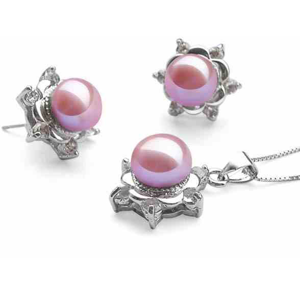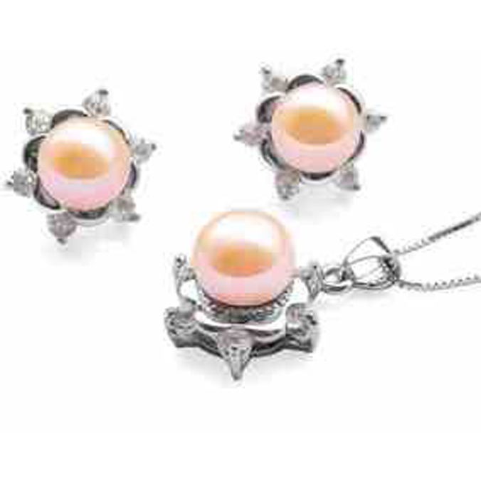 This beautiful pearl matching set is made with 9-10mm AA quality large pearls with cubic zirconia diamonds.