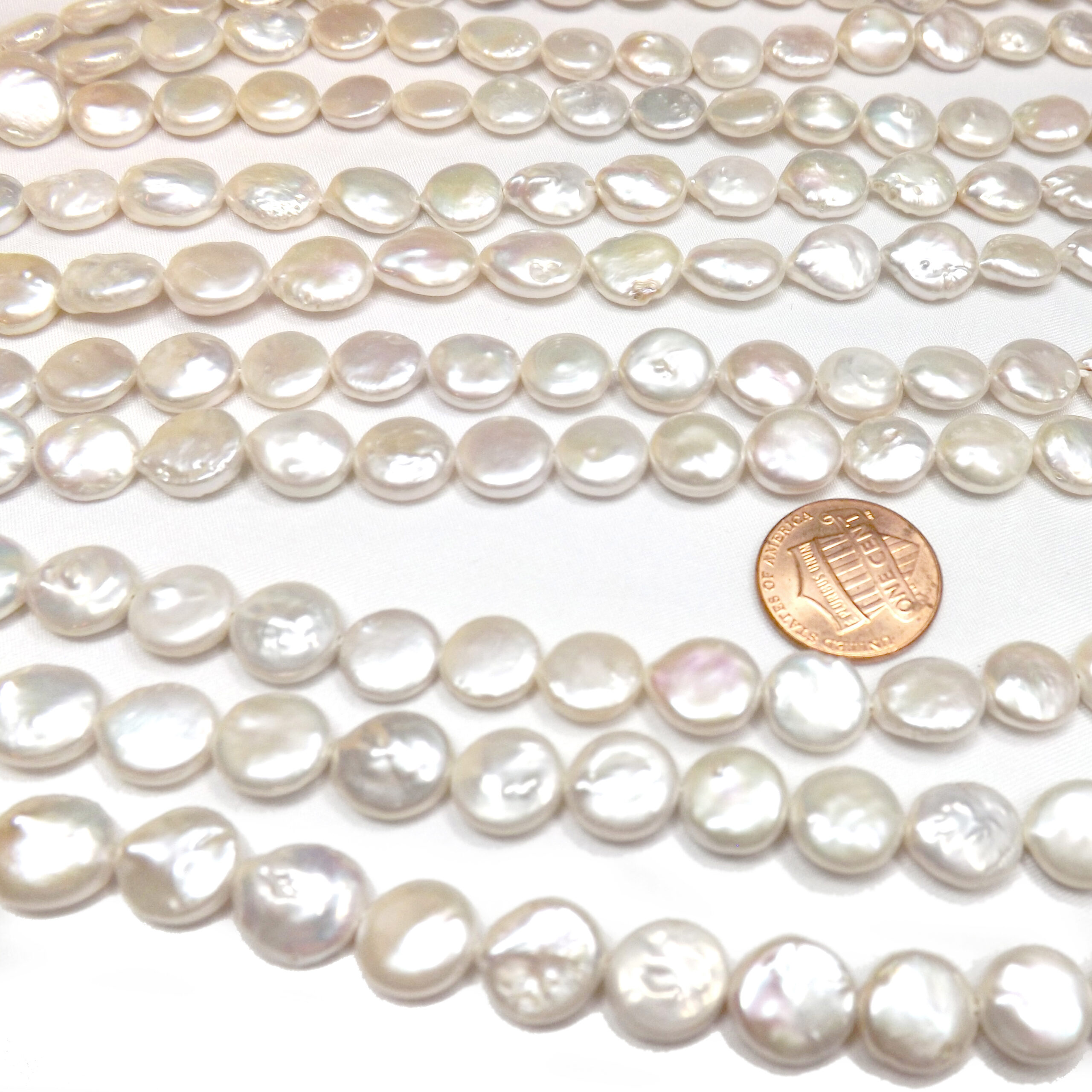These are nice AA or AA+ quality 9-10mm round shaped coin pearl strands. Perfect to make your unique pearl jewelry at a great price.
