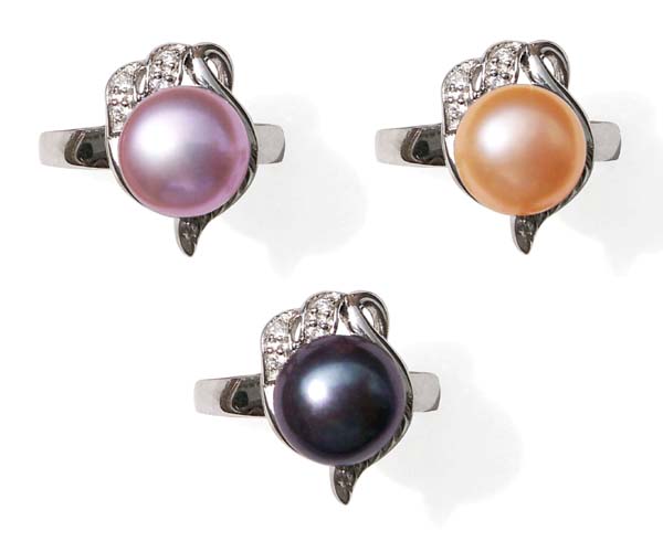 Add a luxurious look with a white or black 9.5-10mm genuine pearl ring with cz diamonds on one side for a unique design. These pearls are flat on the back and dome shaped on the front which are often also called as button pearls.