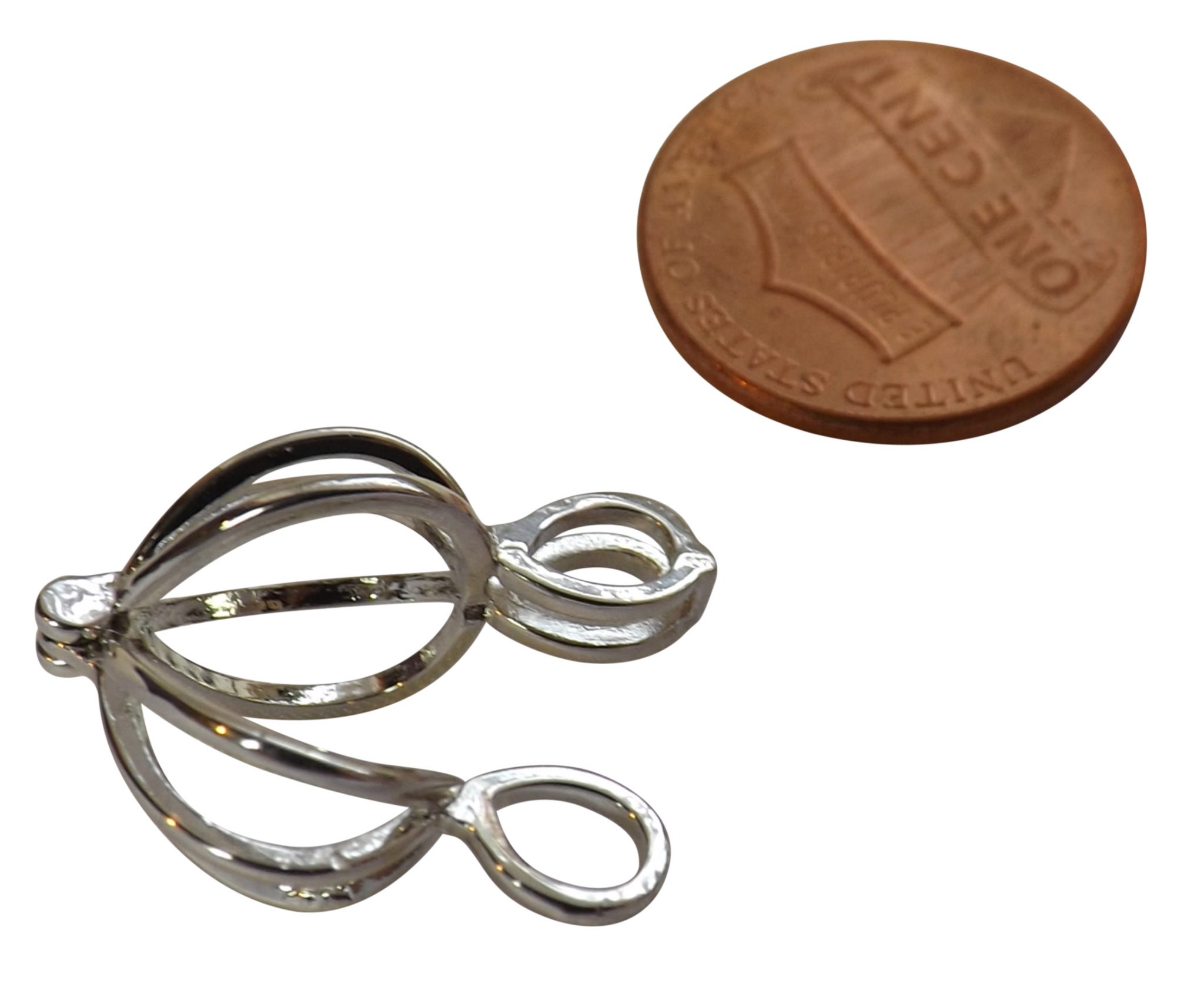 Stamped with “925”, a universal pure sterling silver symbol, this cage has a dimension of 1/2″ x 7/8″ from its longest dimensions and weighs approximately 1.3gram.
