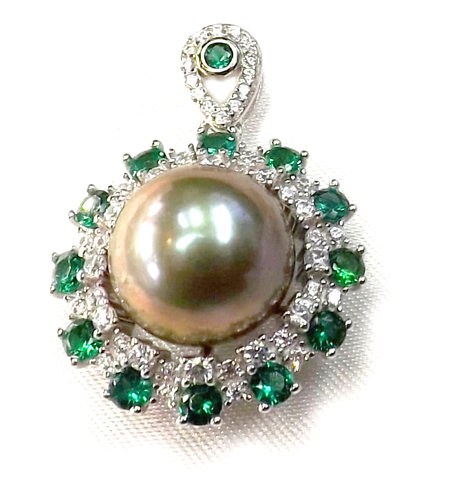 In conclusion, the 18KG over 925 sterling silver pearl pendant is a stunning piece of jewelry that is sure to make a statement wherever you go. With its shimmering silver and lustrous pearl, this circle of emeralds silver pendant is the perfect way to elevate your style. It can also add a touch of glamour to any outfit. Treat yourself to this beautiful accessory an or white gold to go with your favorite chains. We also have them in white, Tahitian green and light green colors for you to choose from.