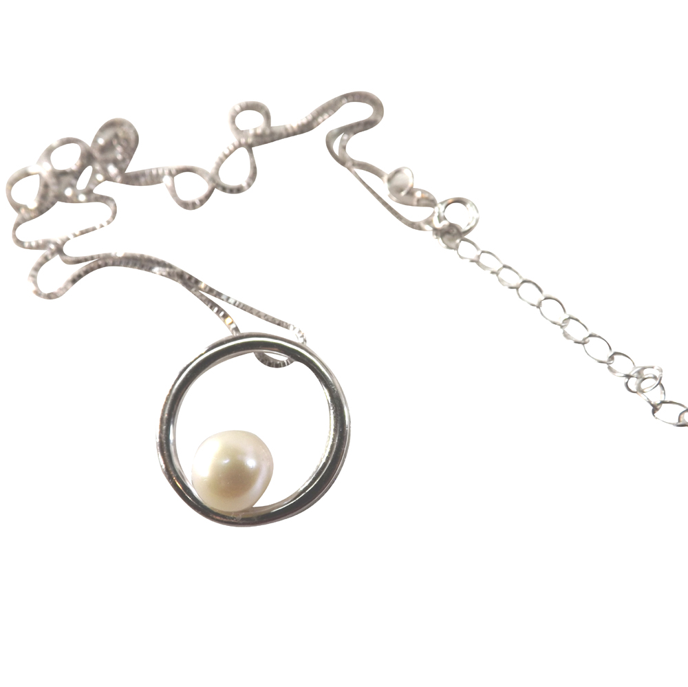 Circle 7-8mm Pearl Pendant in 925 Sterling Silver