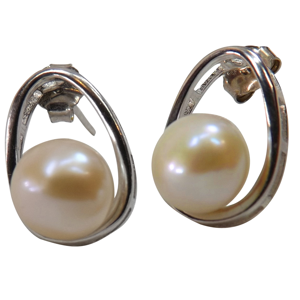 You can’t go wrong with these 925 Sterling Silver Drop Shaped with Button Pearl studs Earrings.