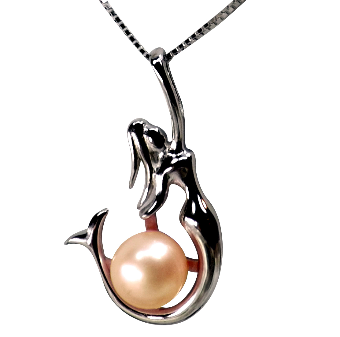 Any girl, any age, will be sure to love this 925 Sterling Silver Elegant Mermaid Pearl Pendant with a 925 Sterling Silver Adjustable Length Chain! This elegant mermaid is holding a 7-8mm high luster freshwater button pearl. She is gracefully reaching up so it appears that she is holding on to the sterling silver box chain.