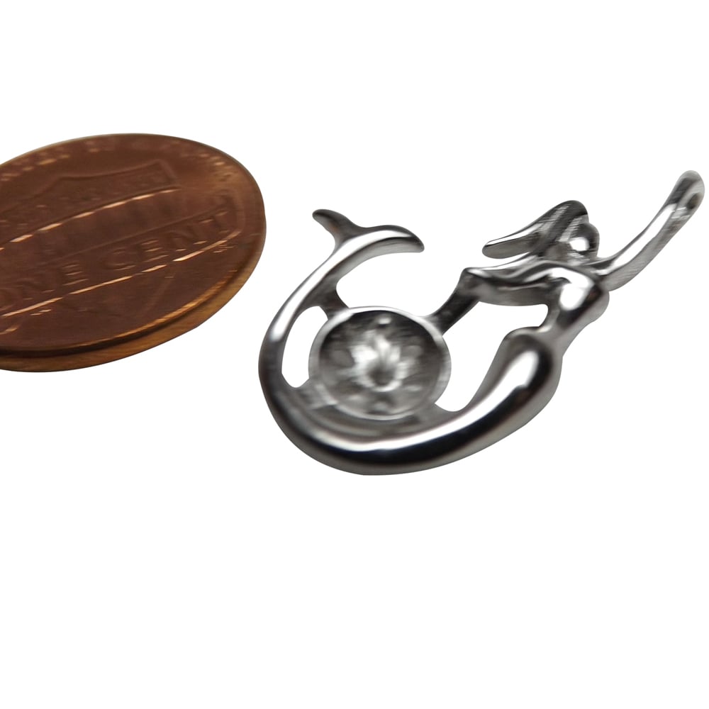 This elegant mermaid silver pendant setting is waiting to hold your favorite pearl or other half-drilled stone. She is gracefully reaching up so it appears that she is holding on to the chain you add.